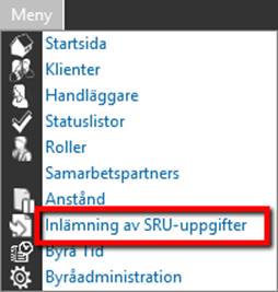 Gå in på Meny och välj här Inlämning av SRU-uppgifter.