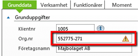Om du får upp att det är Felaktigt Person-/organisationsnummer på BAS så har du antagligen ett felaktigt person- eller organisationsnummer på klienten under fliken Grunddata i Byrå.