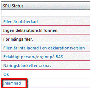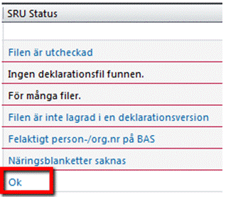 Under kolumnen SRU Status ser du vilken status klientens SRU-fil har och det kan vara lite olika meddelanden som kommer upp där. Därför ska vi gå igenom dem och vad som ska åtgärdas för att kunna skicka iväg SRU-filen.