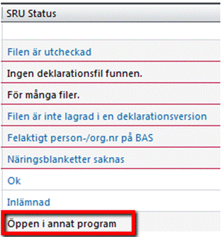 Du kan klicka direkt på SRU-statusen för att öppna upp deklarationen.