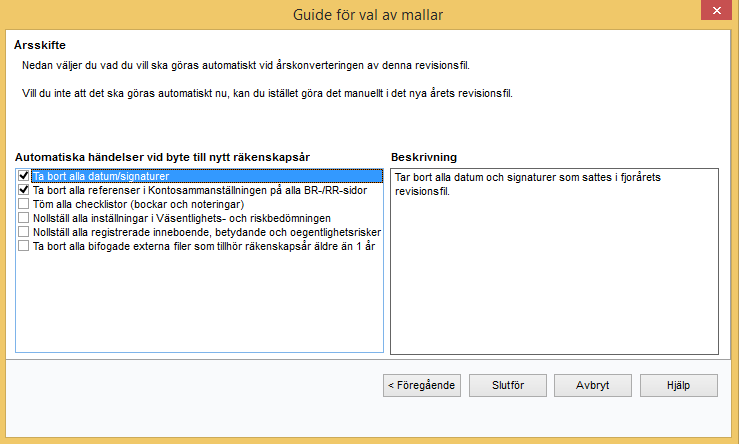 Valen kommer upp som sista dialog i Guiden när du gör Nytt räkenskapsår i revisionsfilen.