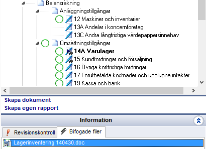 Du har kanske varit ute hos kunden och tagit ett digitalt foto av inkuranta varor på lagret och vill spara bilden i anslutning till granskningen av lagret i revisionsprogrammet. I bilden har en specifikation i Word lagrats inuti revisionsfilen och kopplats till posten Varulager.