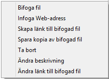 Om man först markerar den sida i trädvyn dit man vill bifoga en fil och därefter högerklickar på fliken ”Bifogade filer” under trädvyn visas nedanstående meny.