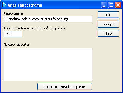 Om du dubbelklickar på frågan får du möjlighet att ange namn och referens. När du sedan klickar på ”OK” visas en rapport med resultatet av frågan. Rapporten visas därefter i arbetsprogrammet i anslutning till den granskningsåtgärd den hör till och kan när som helst åter öppnas genom att man dubbelklickar på den.